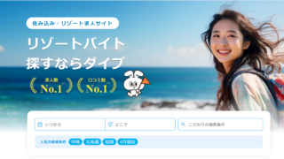 リゾートバイトリゾートバイトダイブの評判は?短期求人は少ないが安定のサポートで初心者も安心の会社 求人数の多さ・サポート体制が充実していることで知られるリゾバ派遣会社のリゾートバイトダイブ高時給求人数ではやや他社に劣るものの、サポートの安心感からリピーターも... 2026.02.16リゾートバイト