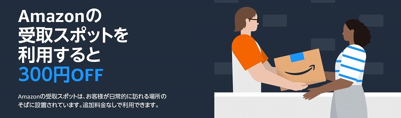 期間中、Amazonでの買い物の際に自宅に配送するのではなく受け取りスポットを利用すると、300円OFFになります。