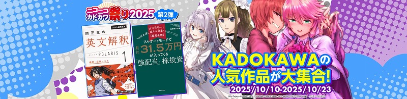 期間中、KADKAWAの人気作品が最大50%OFFで購入できます。