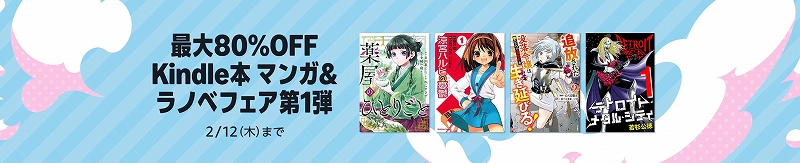 - 【2/12まで】Kindle本マンガ・ラノベが最大80%OFF