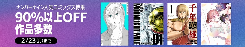 - 【2/23まで】ナンバーナイン人気コミックが90%以上OFF