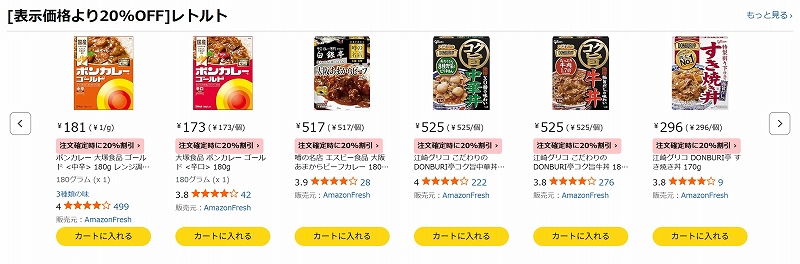 Amazonフレッシュで対象商品を買うと、注文確定時に表示価格より20%OFFになります。