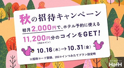 - 宿泊レビューを投稿すると毎月ハフコインがもらえるチャンスあり